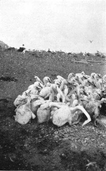 Figure 3. – Young pelicans congregate in “pods”; if frightened they trample each other in the rush to escape, with many resultant deaths and injuries.