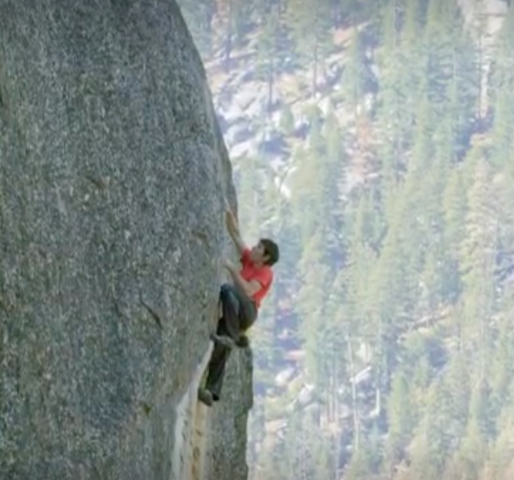Let’s break that down: in climbing, “free” means climbing without artificial assistance — no ropes, none. “Solo” means doing that climb alone. Honnold climbed and studied “El Cap” again and again for years, using ropes, exploring different routes, practicing again and again on the hardest parts, constructing a mental map of every death-defying foot of the way. He was not certain when he would try to make the climb. At least once he started out and then quit, sensing that the time was not right. Then on the morning on June 3, 2017, he set out and kept going….