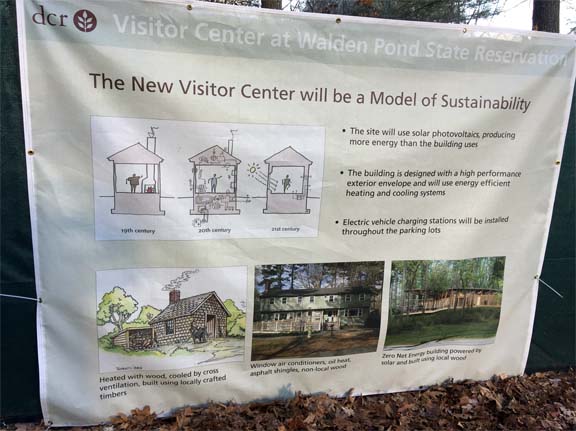 1. At Walden the park managers are dedicated to environmentally-friendly building in the spirit of Henry David Thoreau. Here are posters showing the plans for a new visitor’s center and book store, now completed: