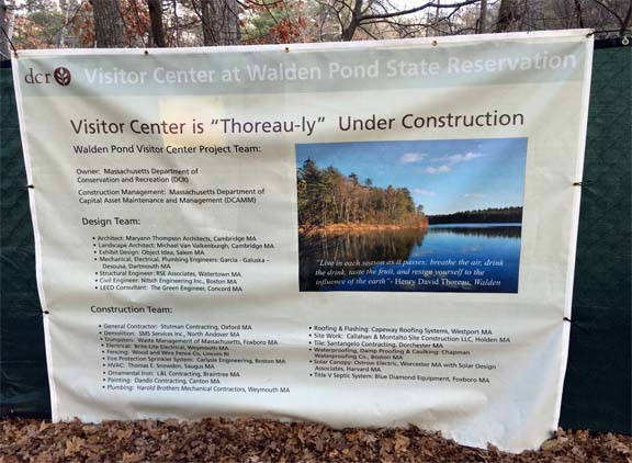 Note the play on words: the Thoreau-related visitor’s center will “Thoreauly built.” The quotation in the picture, from Henry David, reads: “Live in each season as it passes; breath the air, drink the drink, taste the fruit, and resign yourself to the influence of the earth.”
