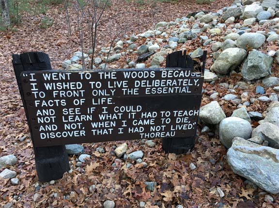 Nearby this sign commemorates Thoreau’s famous explanation in Walden for why he went to live here: